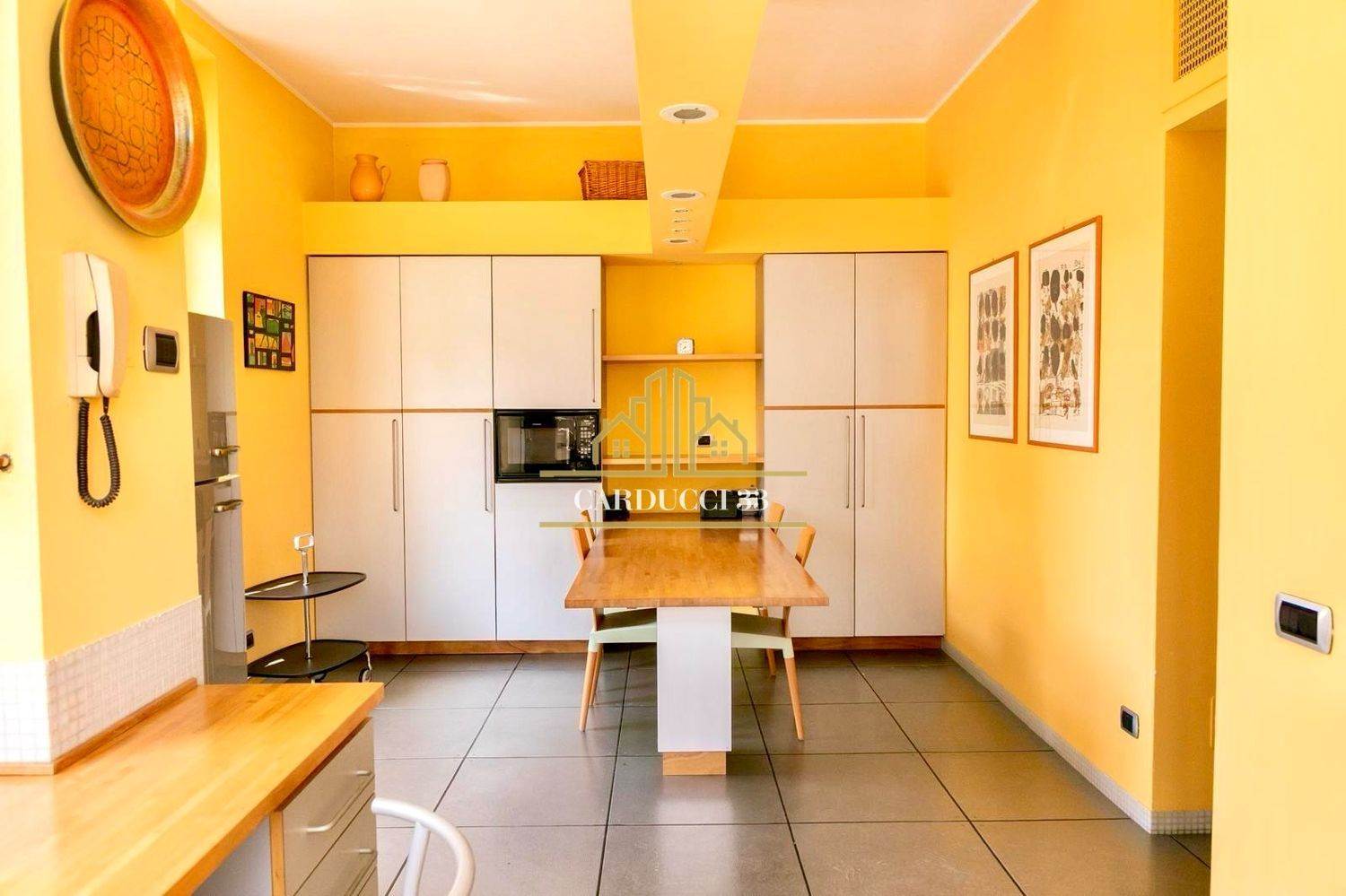 La taverna, caratterizzata da un camino a vista funzionante, ospita una cucina professionale di generose dimensioni, lavanderia, stireria, cantinetta e locale tecnico: spazi perfetti per accogliere e vivere la casa con comfort assoluto.