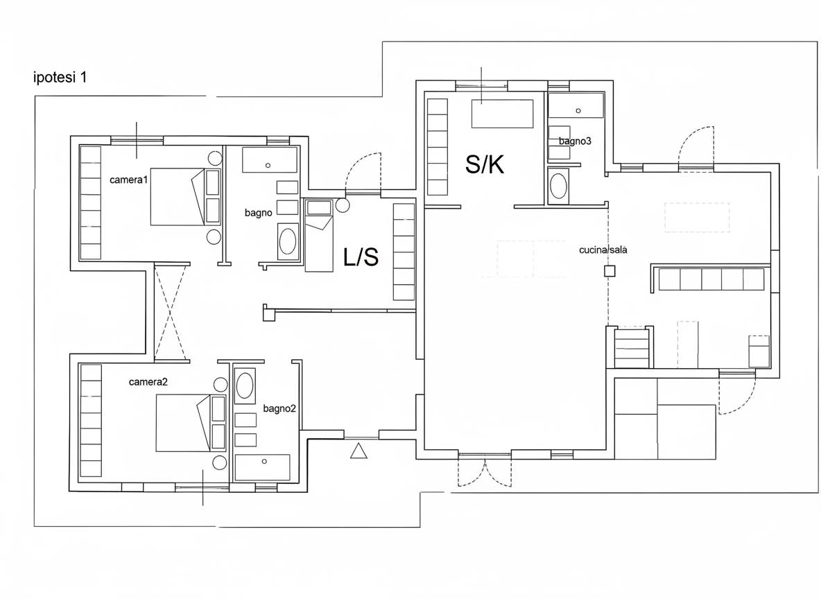 L’immobile è stato progettato per offrire un elevato comfort abitativo e una grande flessibilità distributiva: è possibile realizzare una zona giorno ampia e rappresentativa con cucina a vista, fino a quattro camere da letto e più servizi, oppure privilegiare ambienti più generosi dedicati al relax e alla vivibilità, in base alle proprie esigenze.