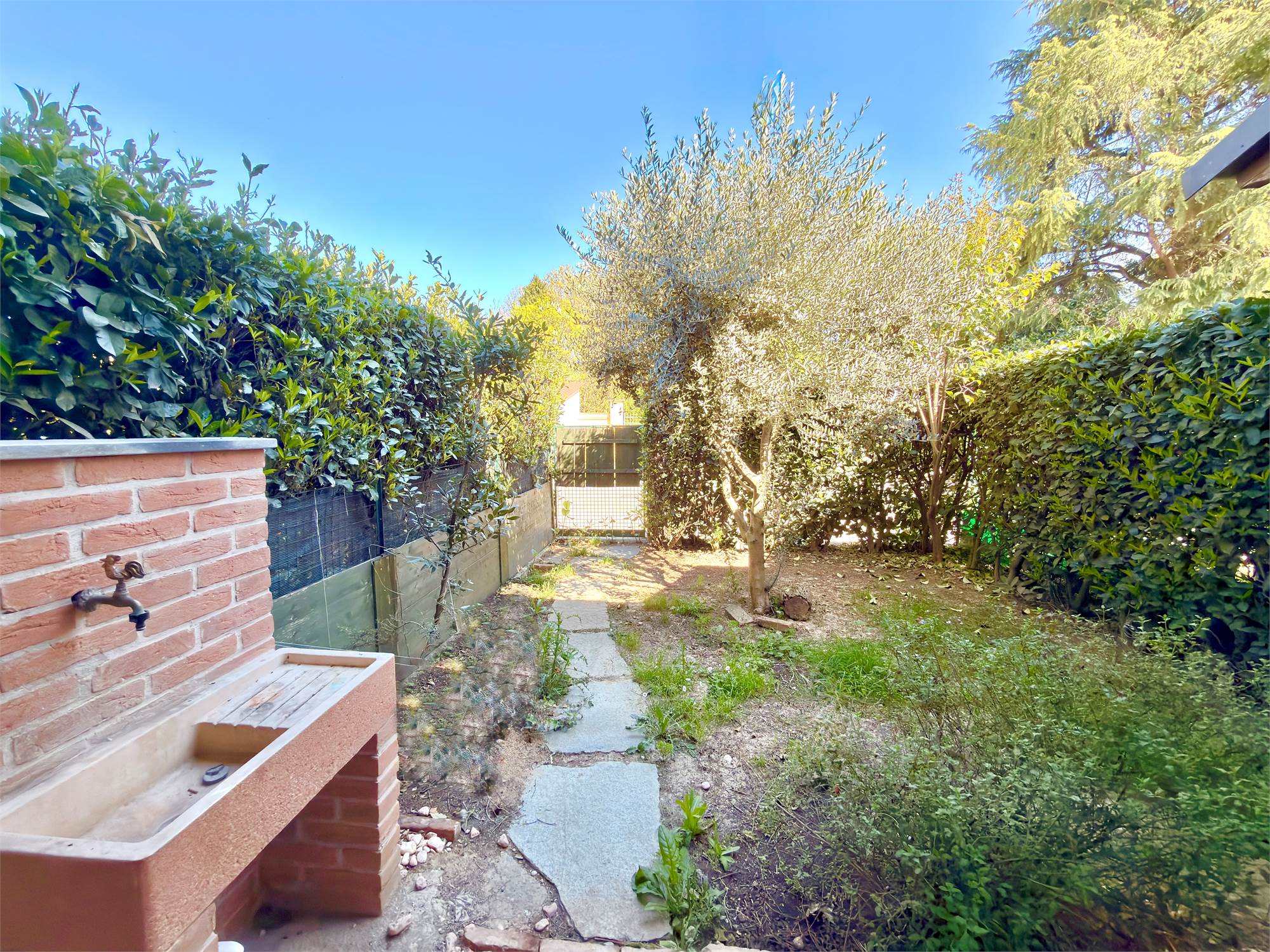 Il giardino, riservato e funzionale, offre anche un secondo accesso pedonale indipendente, dettaglio raro e molto apprezzato.